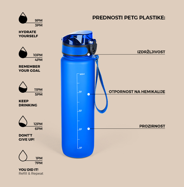 ARENA je nova boca od 1l. Izrađena je od PETG plastike.