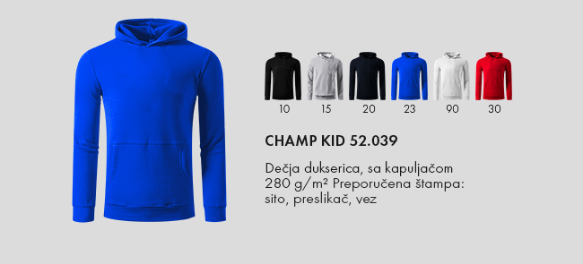 Dečija dukserica, sa kapuljačom 280g, preporučena štampa: sito, preslikač, vez