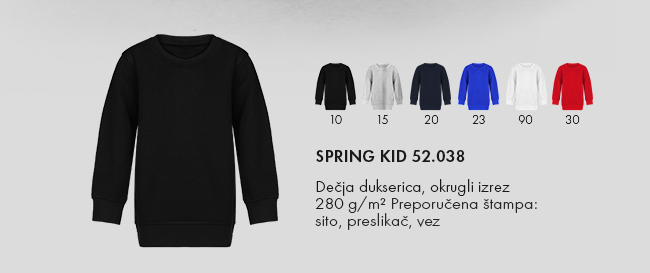 Dečija dukserica, okrugli izrez 280g, preporučena štampa: sito, preslikač, vez