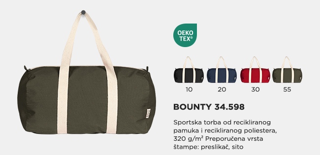 Sportska torba od recikliranog pamuka i recikliranog poliestera, 320 g/m2.
